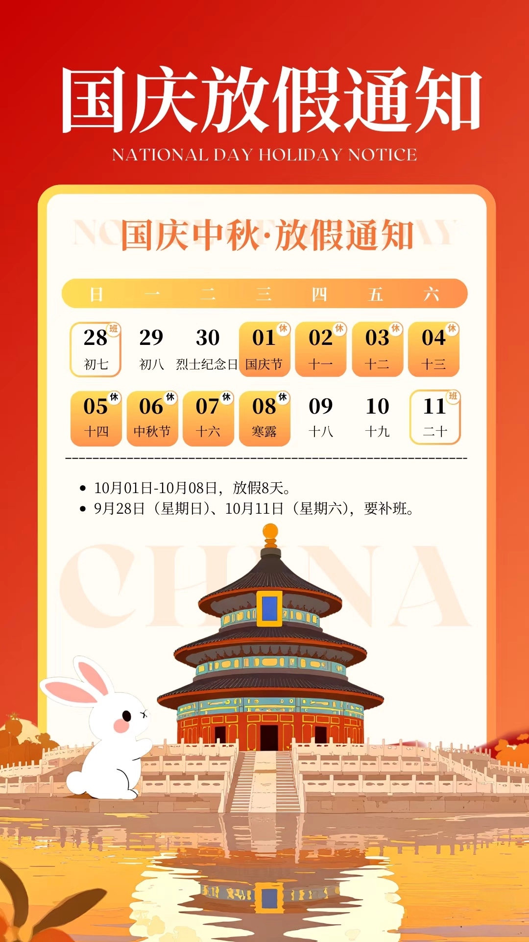 2025年国庆节放假通知